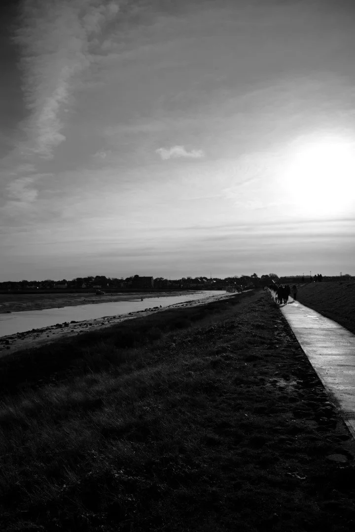 The path is clear, the way well troden. The chatter and barks of life goes on. The cold air whispers, a collar turned.